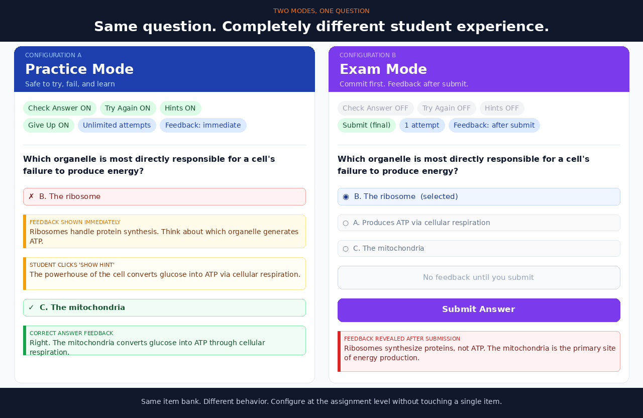 Atomic Assessments lets you write feedback for every possible answer, so students understand exactly what they missed and why.